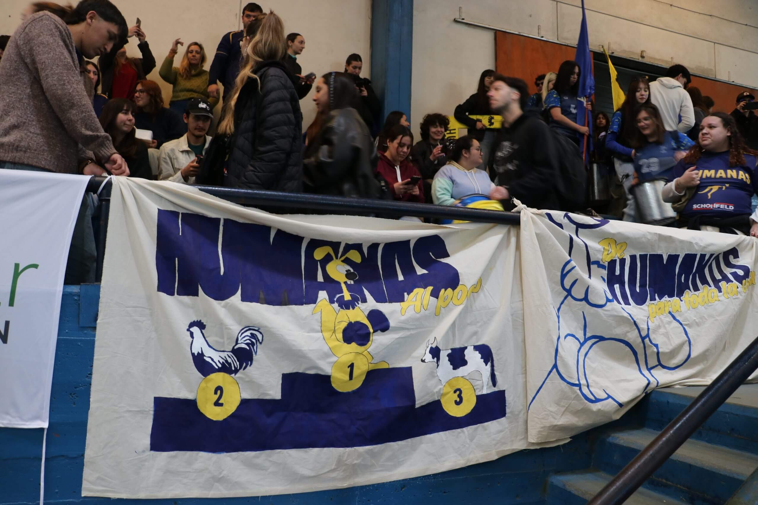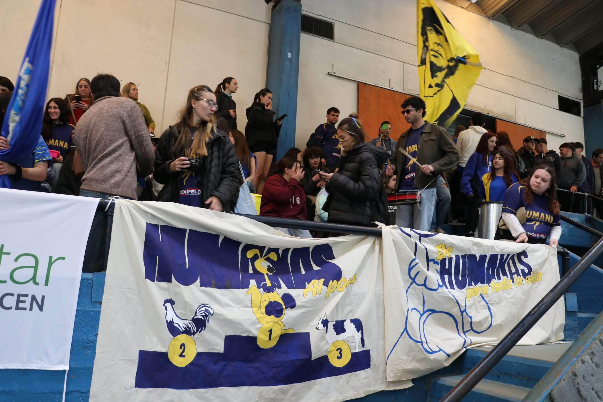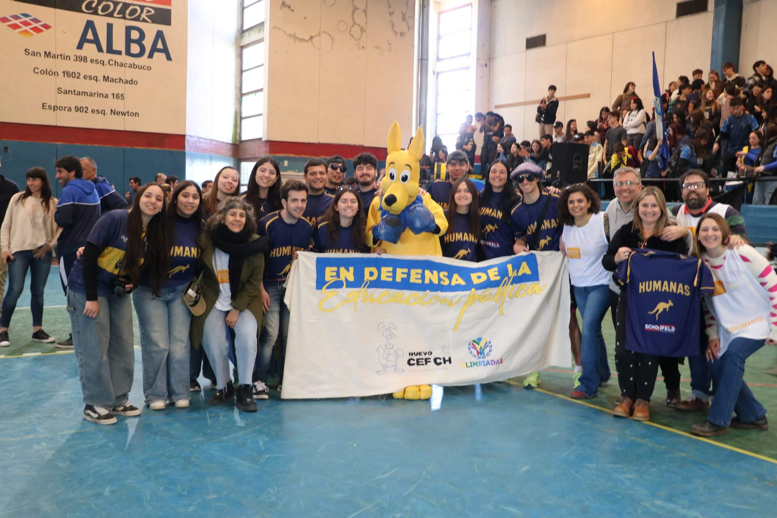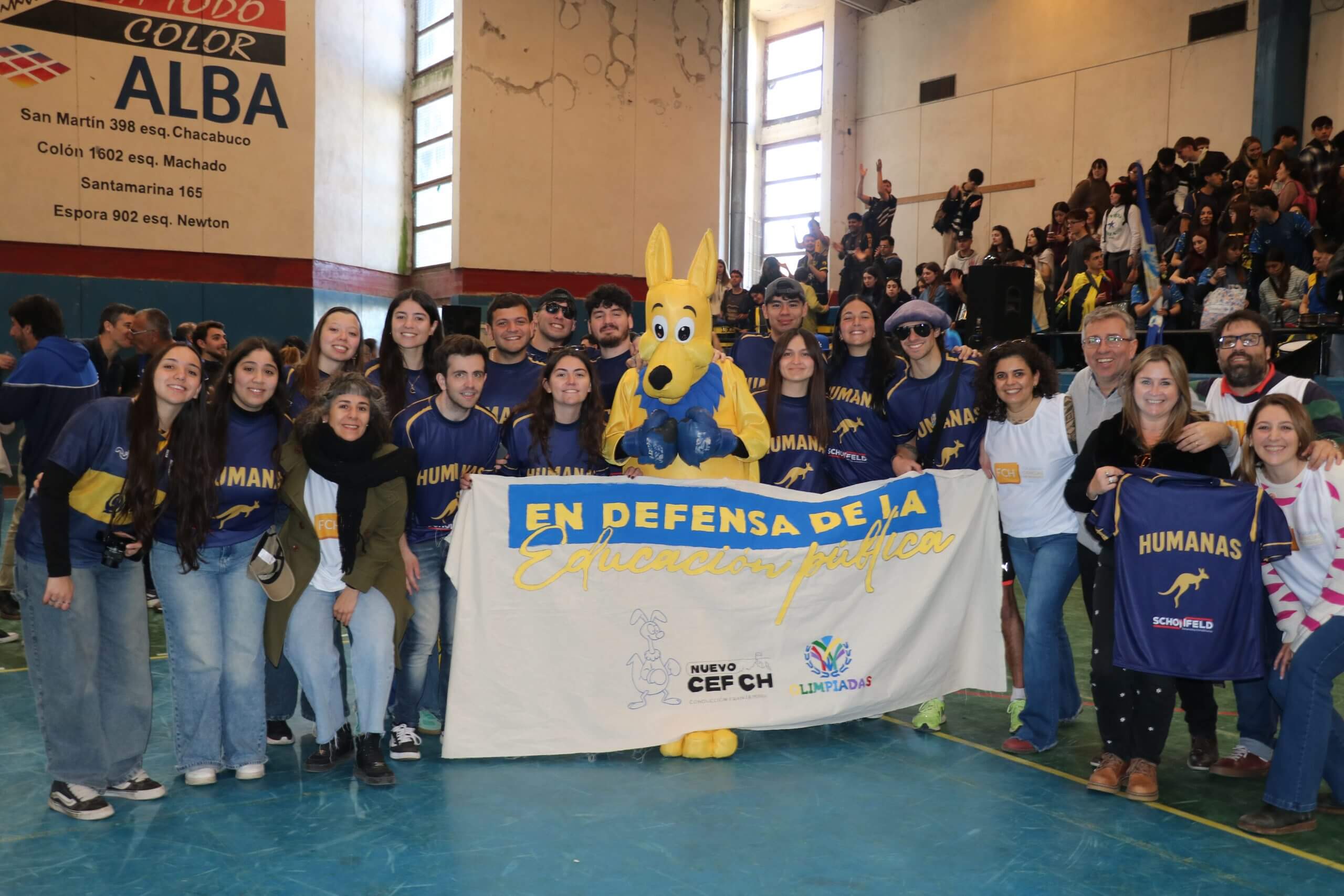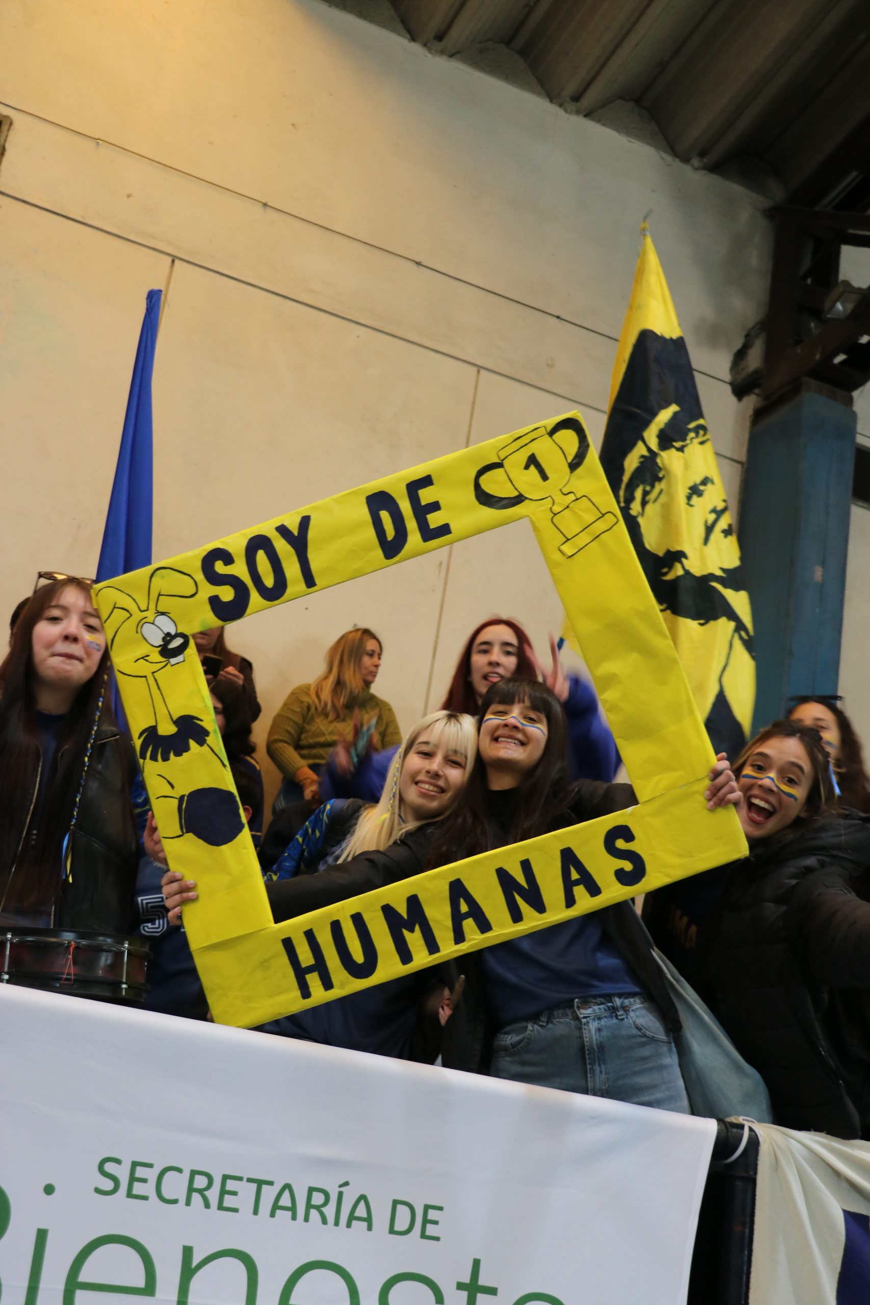 La previa de la FCH arrancó con todo. Lxs estudiantes caminaron juntos hacia el gimnasio, al ritmo de los bombos y bengalas que llenaron de color la entrada. Luego, ya en el predio, hicieron su clásica entrada triunfal con el boxitracio, sumando la energía de su mascota tradicional y los colores que identifican a la FCH.